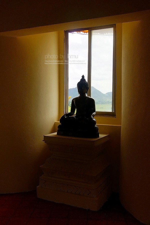 ต้องเอามือยื่นออกไปนะครับ เพราะตรงมีพระพุทธรูป ปางต่างประดิษฐานอยู่ทุกช่อง.