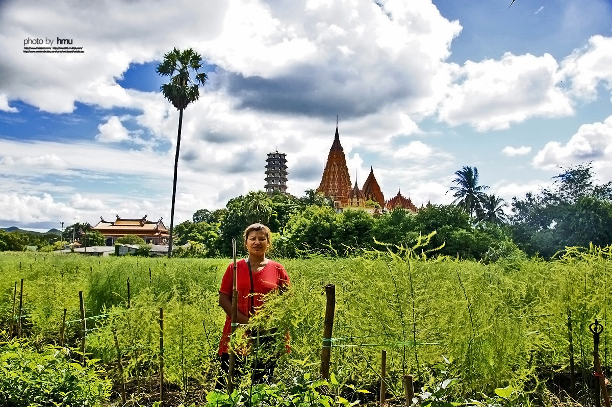แหม่มถ่ายกับแปลงหน่อไม้ฝรั่ง