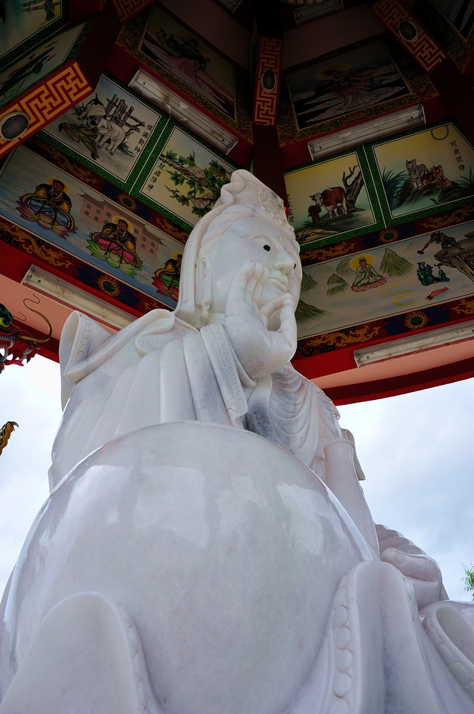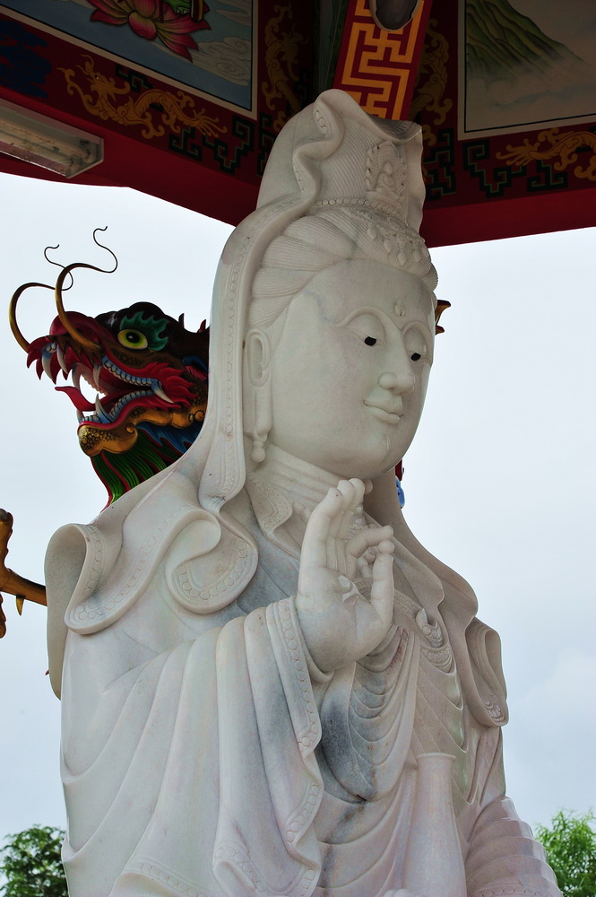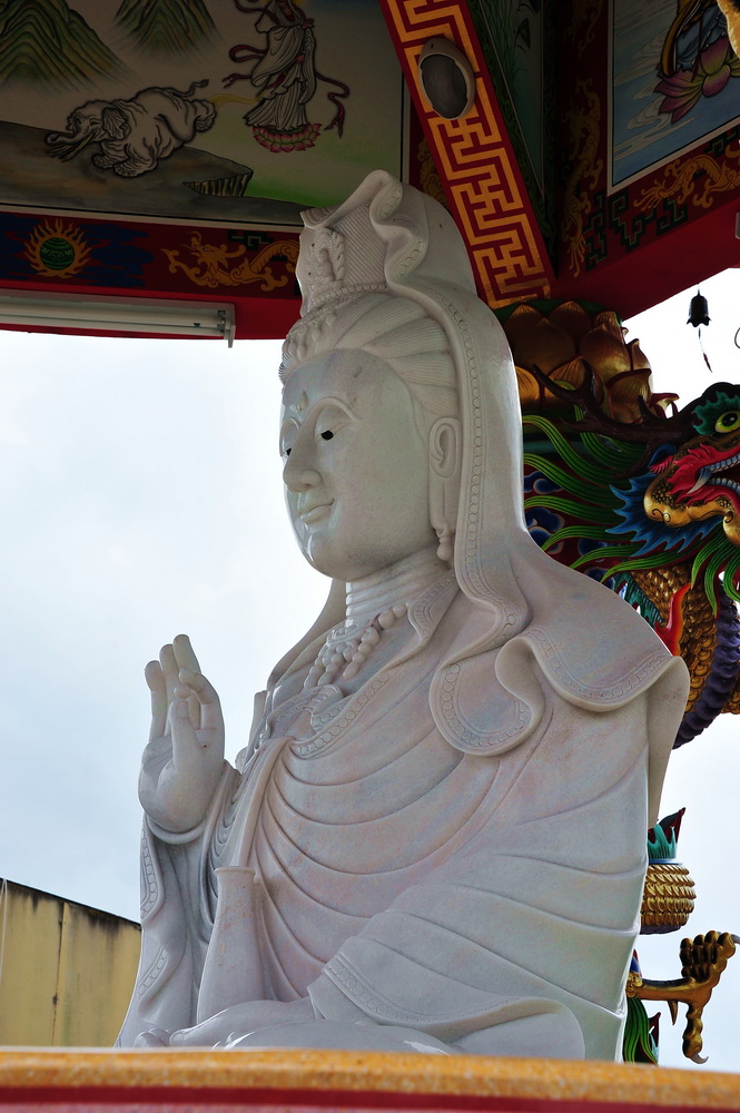 ทานกาแฟกันเสร็จเรียบร้อยแล้ว ไปกันต่อครับ แวะเข้าชมพระโพธิสัตว์กวนอิม หยกขาวที่ใหญ่ที่สุดในโลกกัน ที่ศาลเจ้าหลวงเตี่ย ตลาดนิคมฯ (กม. 12) อ.นิคมพัฒนา จ.ระยอง