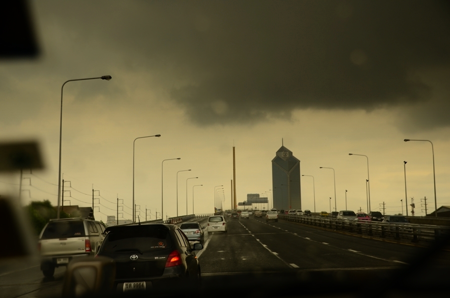 สวัสดียามค่ำคินวันพุธกับอากาศครึ้มฟ้าครึ้มฝนบนสะพานพระราม