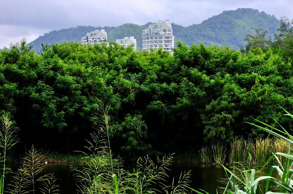 ภาพนี้ถายจากข้างทางเป็นตึกที่อยู่ในสนามกอฟล์ปัญญาบางพระ