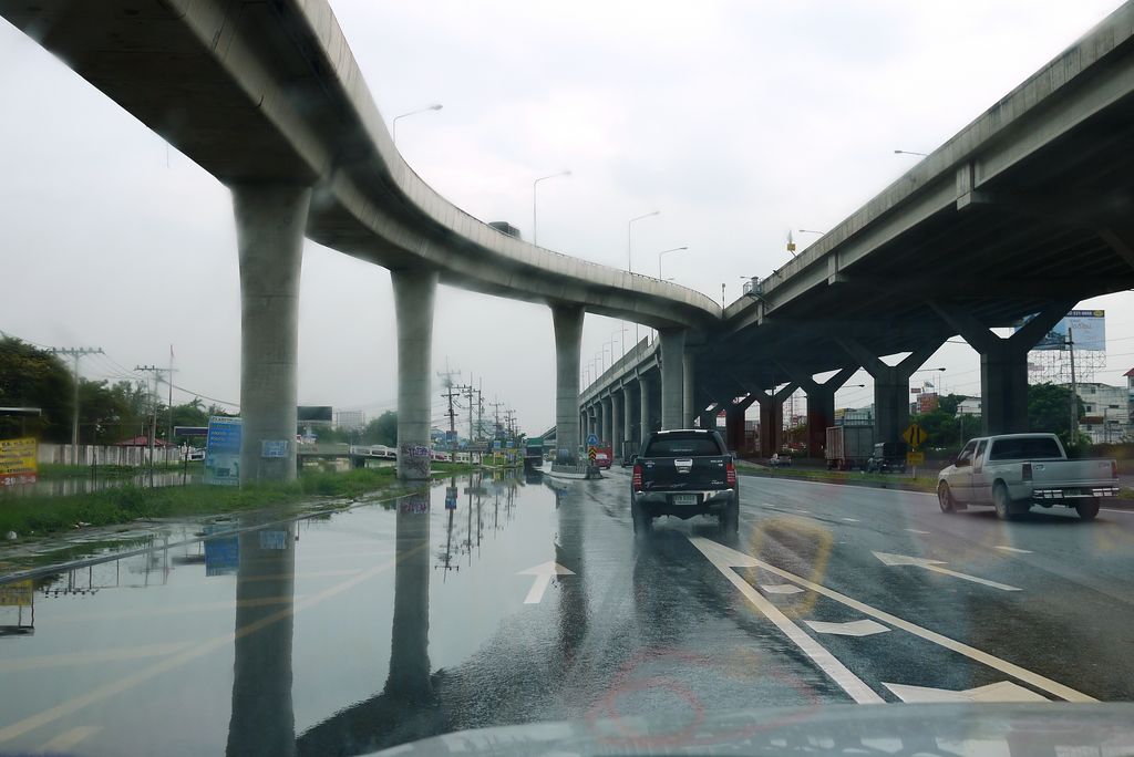 ทำอะไรไม่ได้แล้ว เปลี่ยนอะไหล่ก็ไม่ได้ ร้านปิดชั่วคราวไม่กล้ารับรถลูกค้าไว้กลัวน้ำท่วมรถ ซื้ออะไหล่แล้วก็ขึ้นทางด่วนกลับดอนเมือง ลงทางด่วนเลี้ยวซ้ายจะเข้าดอนเมือง ผ่านคันคลองชลประทานเจอน้ำท่วมขังอีก เพราะเจอฝนตกหนัก