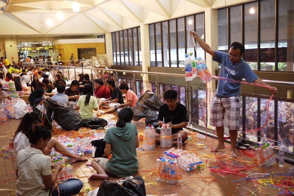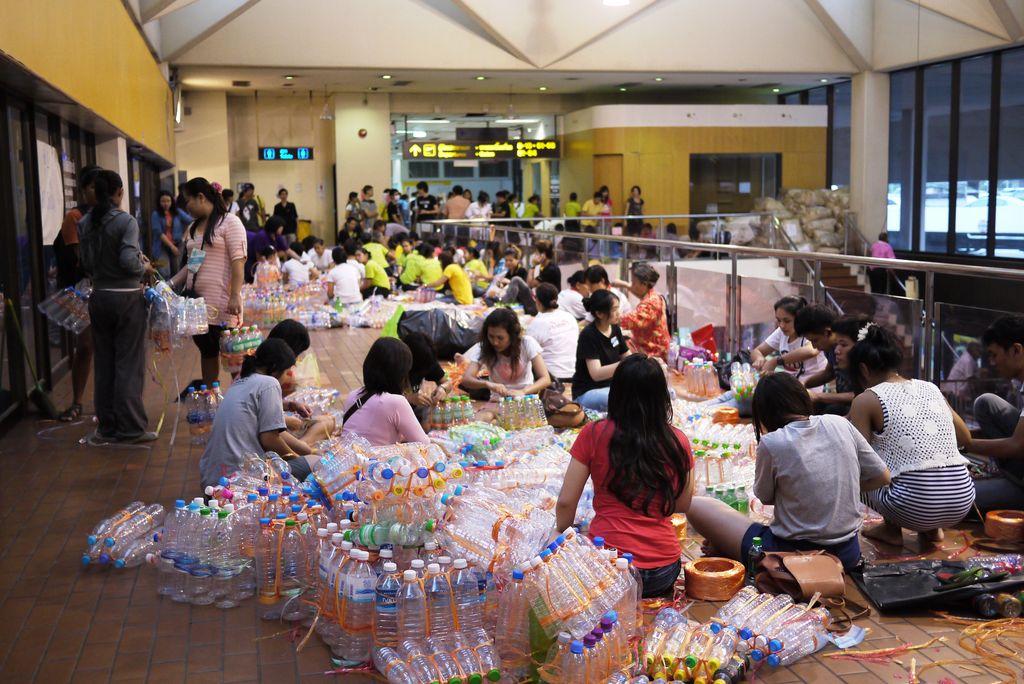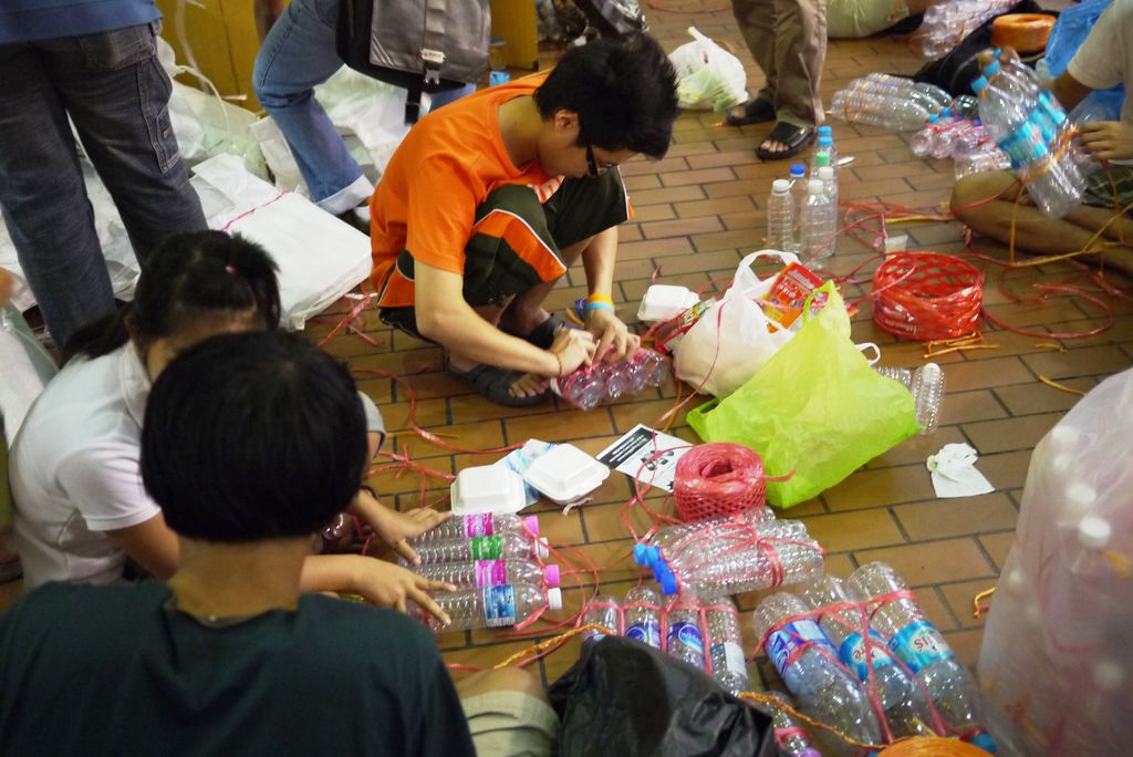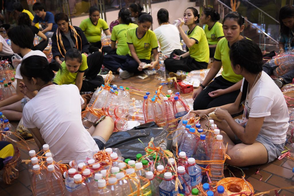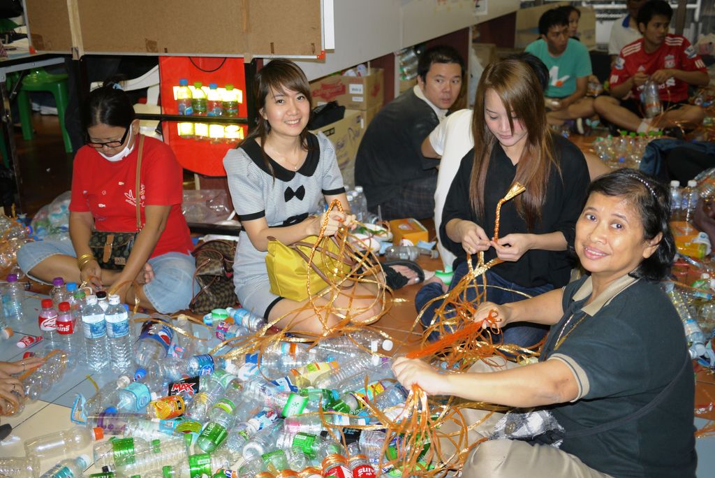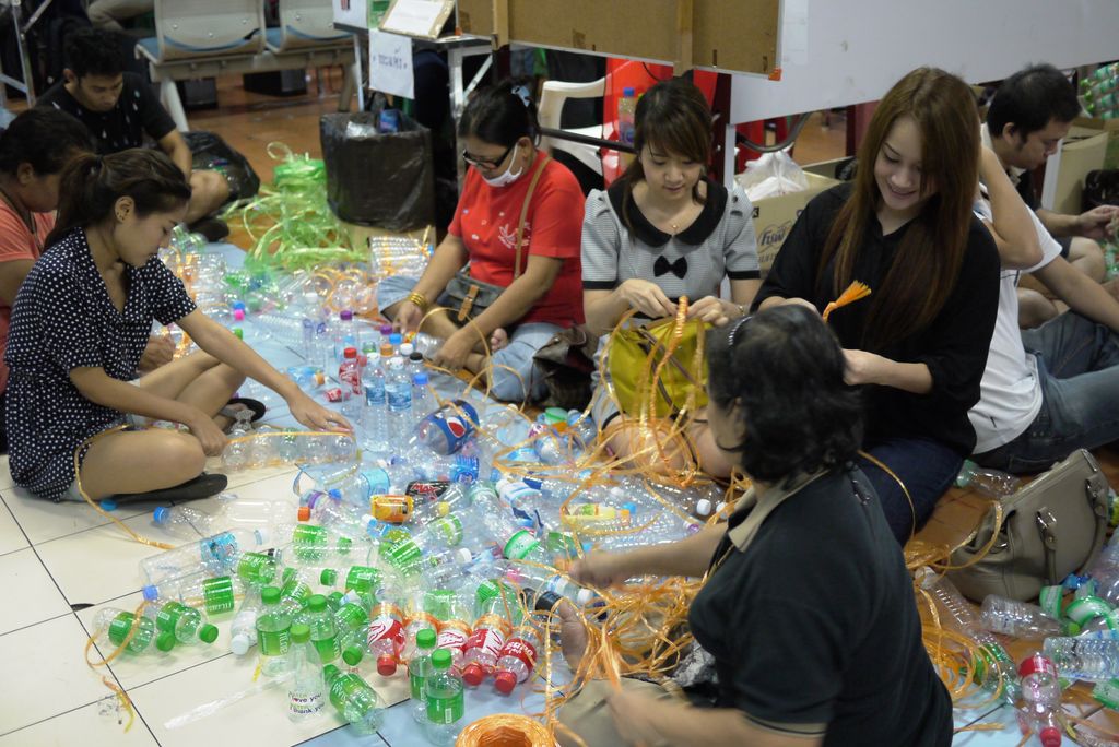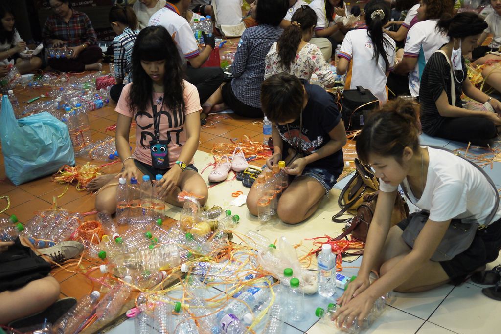 แผนกนี้ทำเสื้อชูชีพจากขวดเปล่าค่ะ