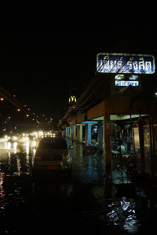 น้ำจากคลองรังสิตเอ่อล้นมาท่วมถนนหน้าเซียร์รังสิต และหน้าตลาดสี่มุมเมืองแล้วจ้า....(เวลา19.30 น.)