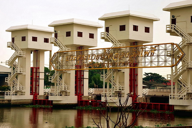 ประตูนำ้คลองลัดโพธิ์ เปิดสูงเท่าผนังกั้นนำ้ เมื่อเช้าวันนี้ครับ