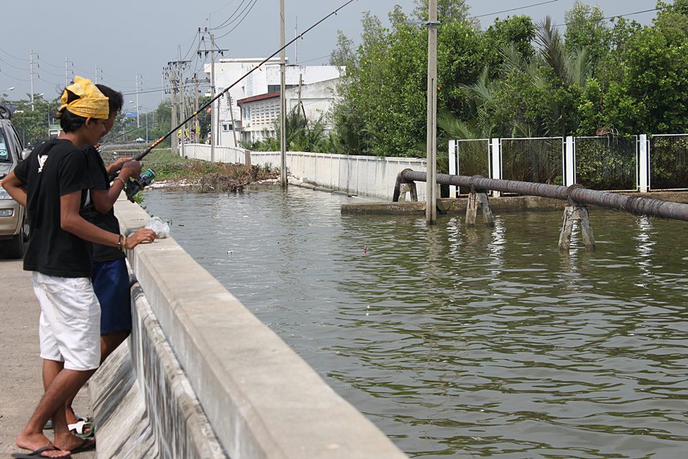 น้ำขึ้นเกือบถึงขอบพนังกั้นน้ำครับ