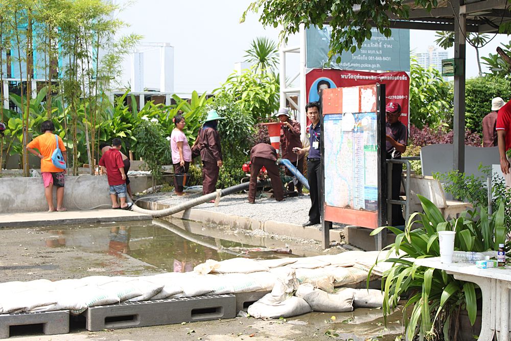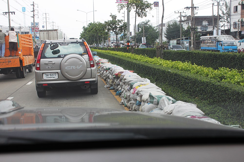 บริเวณริมถนนก็มีกระสอบทรายมากั้นกันไว้แล้วครับ