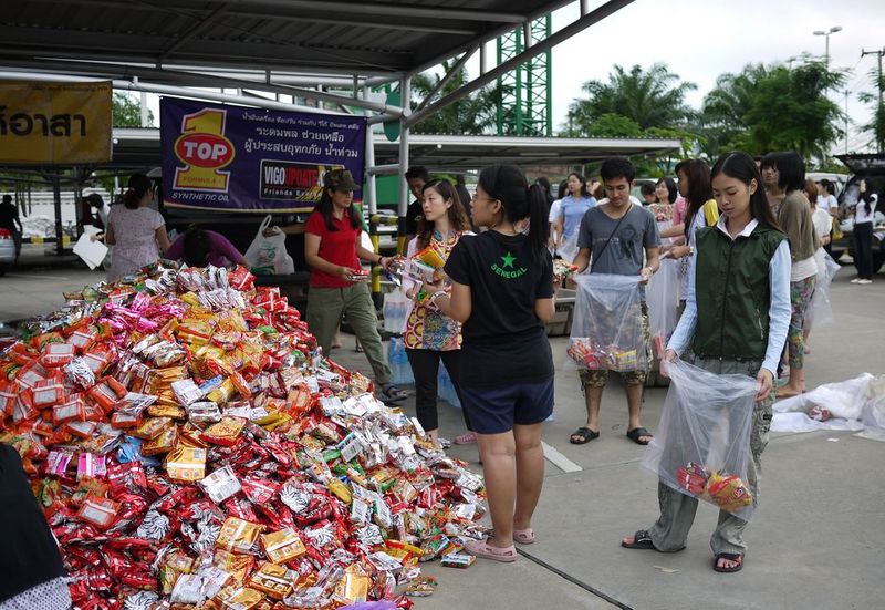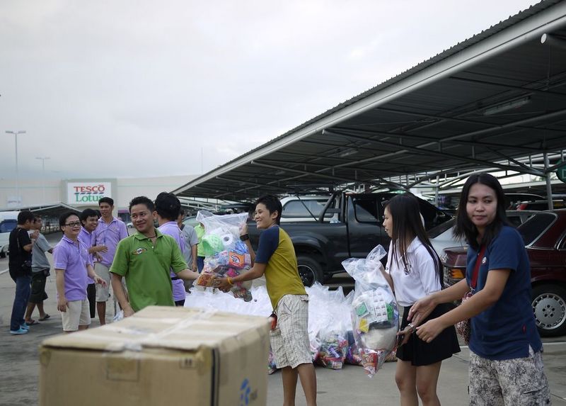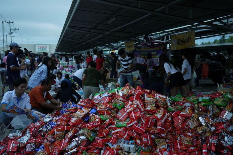 ...ตามตารางนัดหมายที่น้ากาแฟดำได้นัดที่โลตัส บางใหญ่ เพื่อให้ไปช่วยแพคของ บรรจุถุงยังชีพ เพื่อนำไปบริจาคให้กับผู้ประสพภัยน้ำท่วมที่ จ.อยุธยา...ป้าแอ๋วตื่นตั้งแต่ไก่โห่ ออกจากบ้านดอนเมืองตรงดิ่งไปเพื่อให้ทันเวลา...