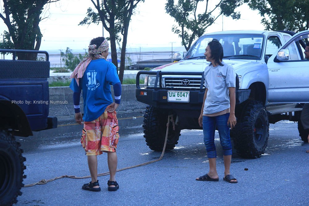 .. จะลาก..ขึ้นโทลเวย์..หรือจะ..ลาก โฟว์โลว์ ขึ้น .. เลือก เอา.. ระดับน้ำก็ยังมีตลอดทาง รถก็ติด..ดู จะลำบาก หาก ไม่ลาก.. งั้น ลาก ลาก ลาก