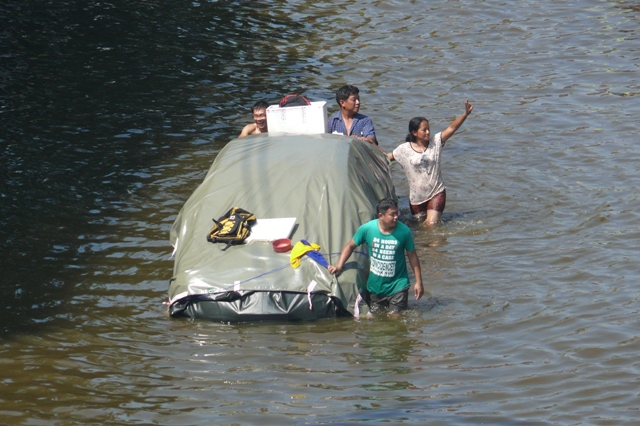 ร่วมด้วยช่วยกัน จากในน้ำช่วยลากเรือ ขึ้นบกช่วยอุ้มขึ้นบันไดจากถนนพหลโยธิน ขึ้นไป " โทลลเวย์ " เลยครับ ขอเคารพในน้ำใจทุกคนครับ