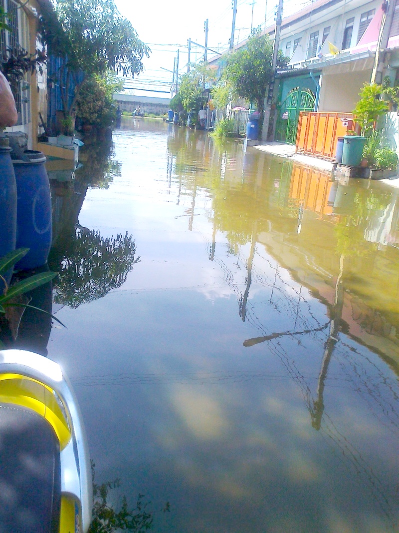สวัสดียามดึกครับ เมื่อกี่นี้ไปเช็คระดับน้ำปรากฎว่าระดับน้ำเพิ่มขึ้นมาอีก 5-10 ซม. ขอให้ระวังน้ำซึมขึ้นจากท่อระบายน้ำ/น้ำซึมขึ้นมาจากพื้นดิน ดังนั้นกระสอบทรายแทบจะไม่ได้ช่วยมากนักอะครับ