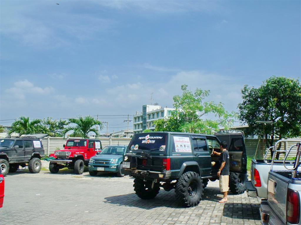 มีรถออฟโรด รอรับข้าวกล่องส่งต่ออยู่หลายคัน