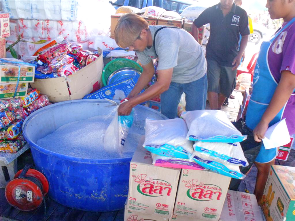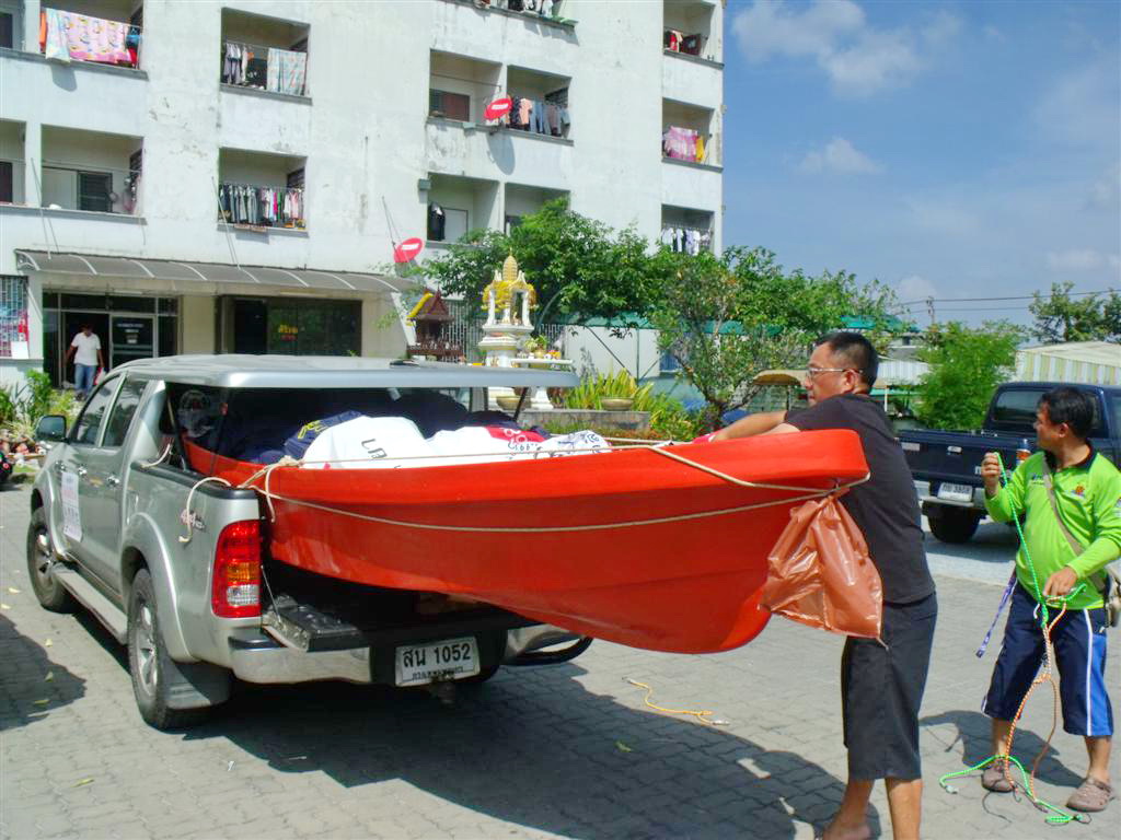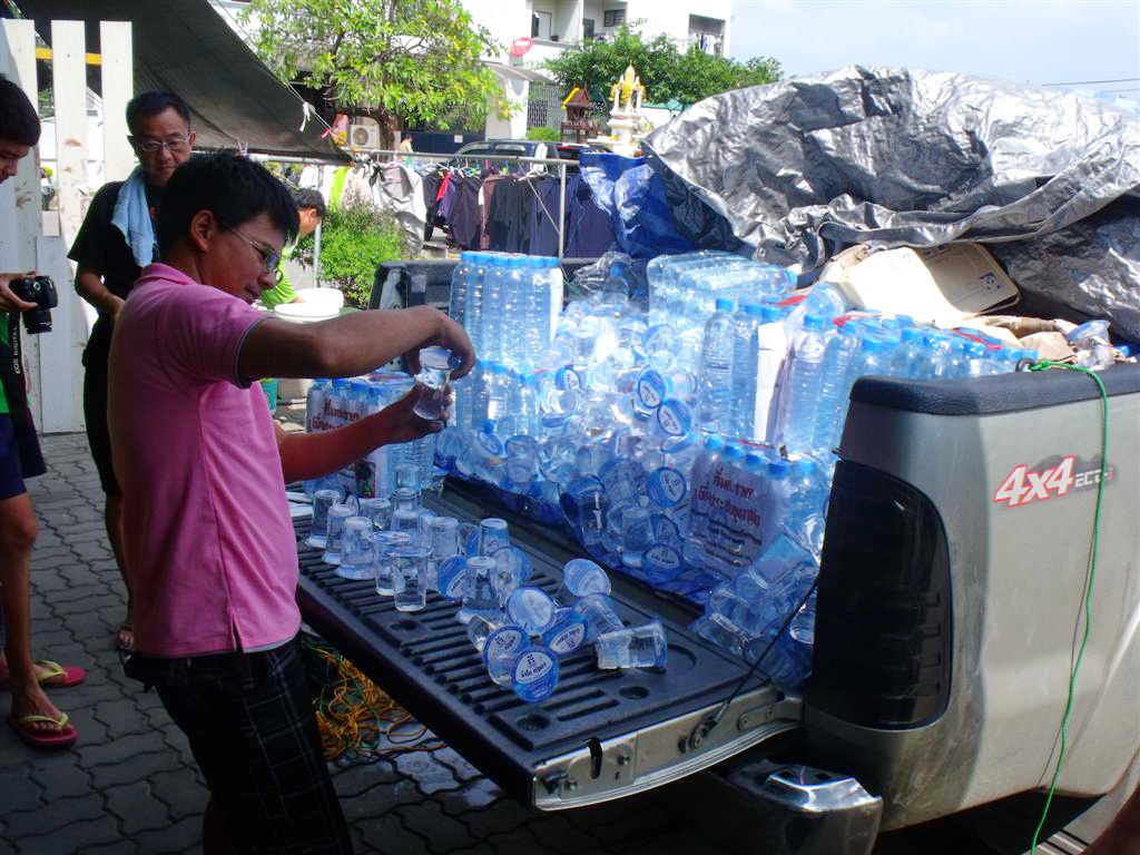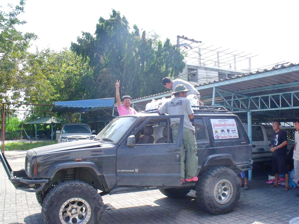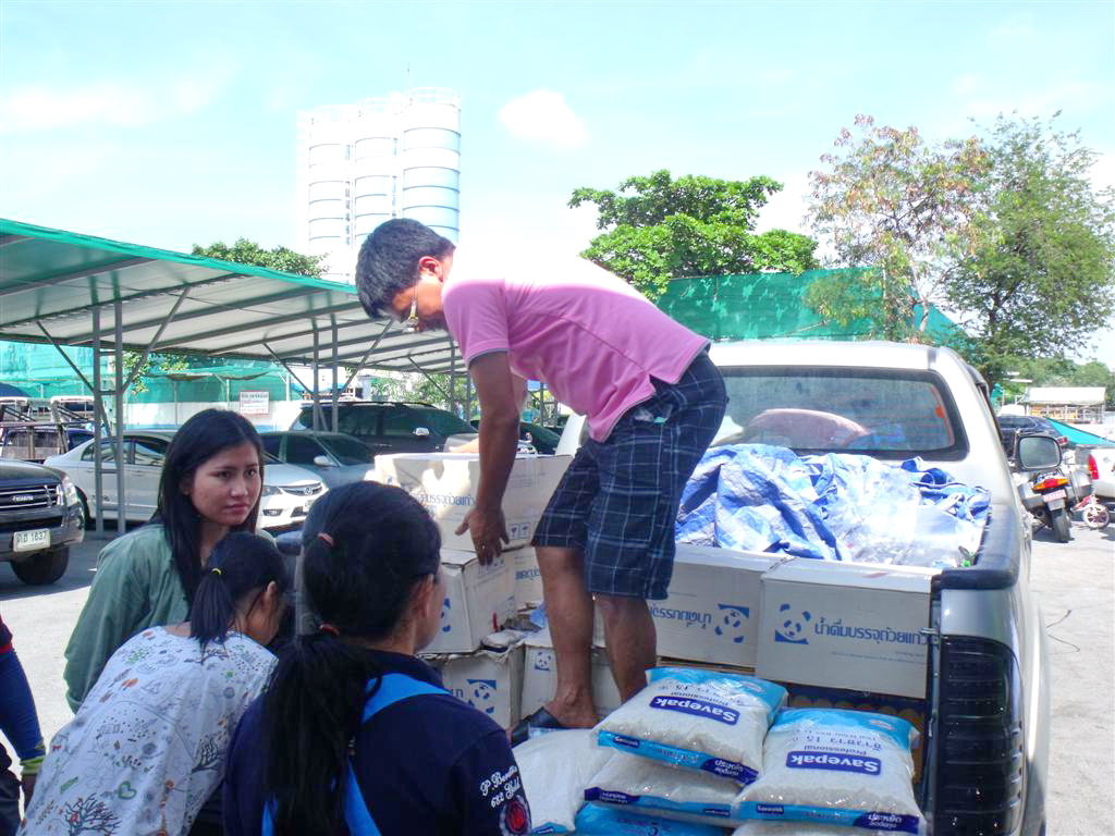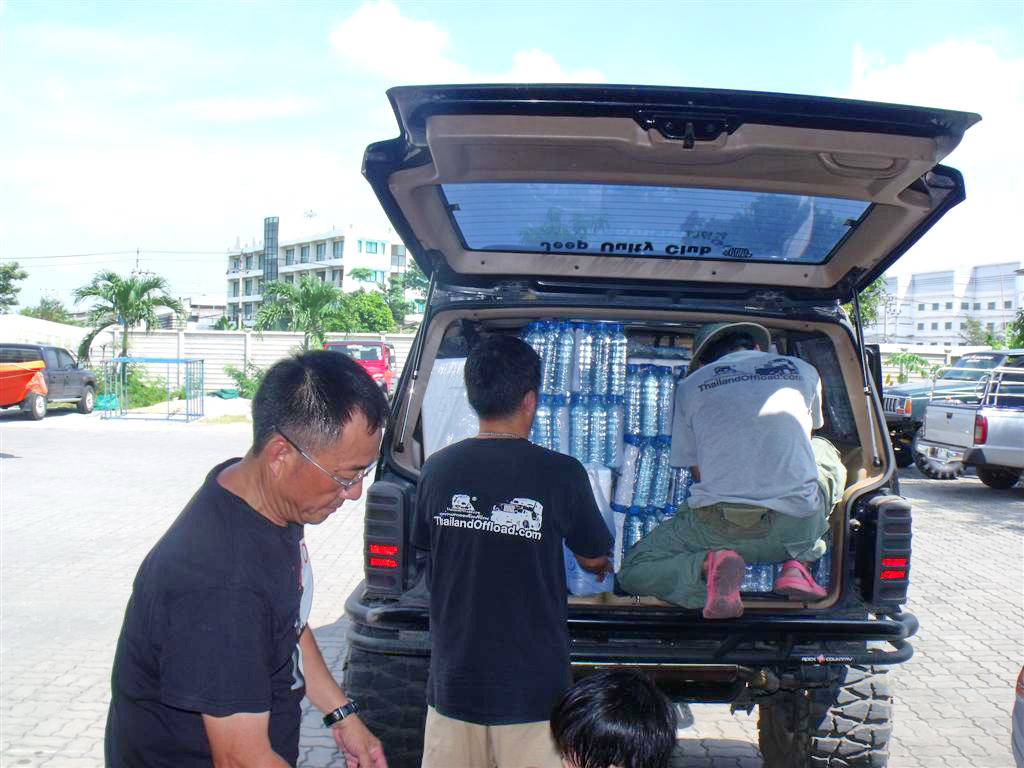 แล้วขนขึ้นรถคันใหม่ เดินทางไปแจกจ่ายให้ผู้เดือดร้อด