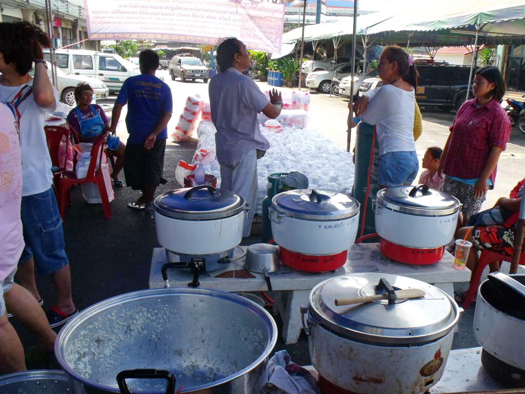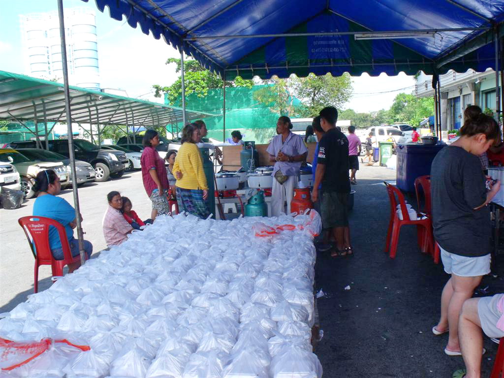 มีโรงครัวเป็นของตนเอง ผลิต ข้าวกล่องออกแจกจ่าย วันละ 3 มื้อ