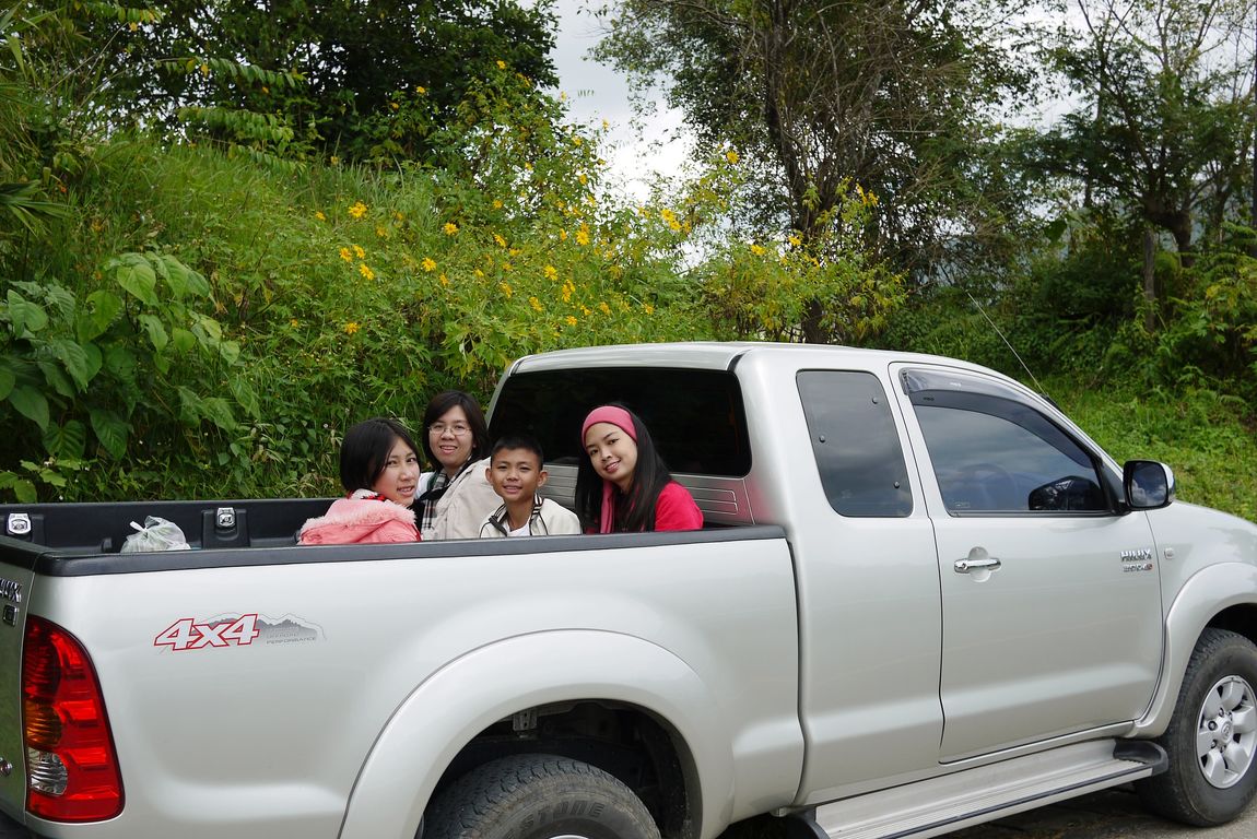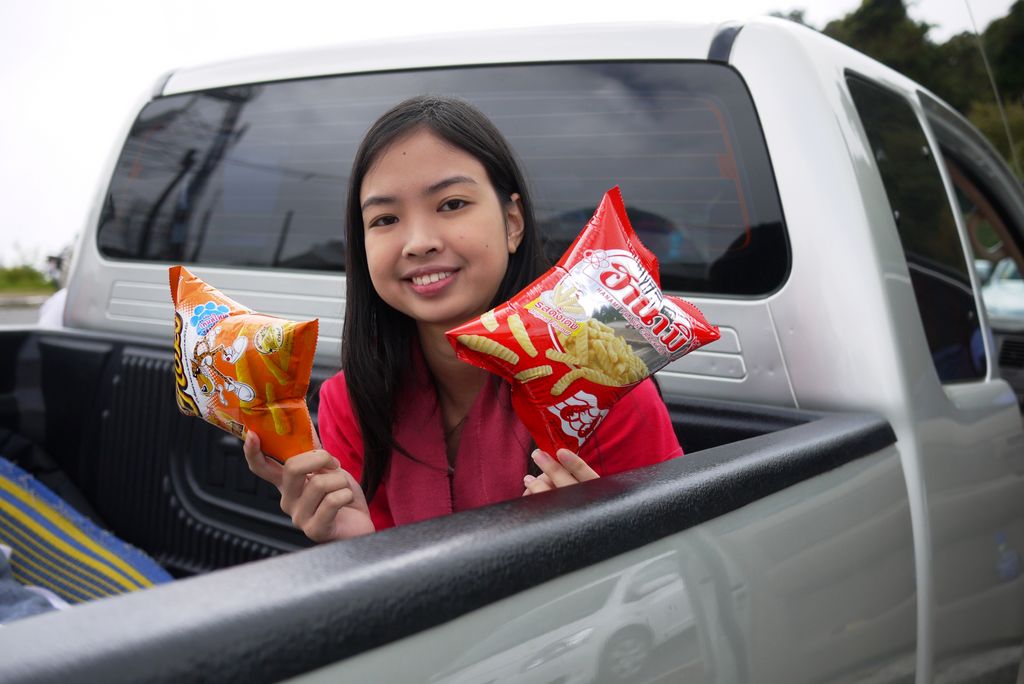 เด็กๆสนุกสนานอยู่หลังกระบะรถ