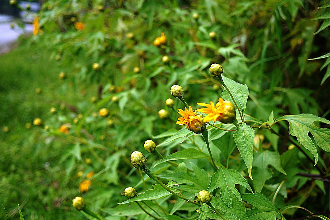 ข้างทางดอกบัวตองกำลังดอกตูมพร้อมบานรับนักท่องเที่ยว