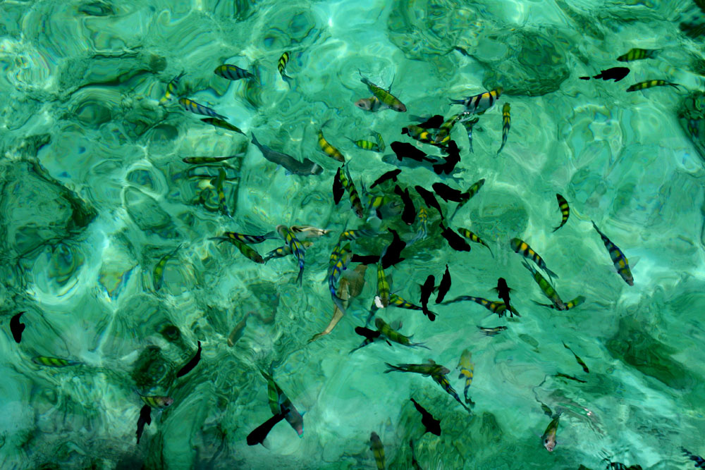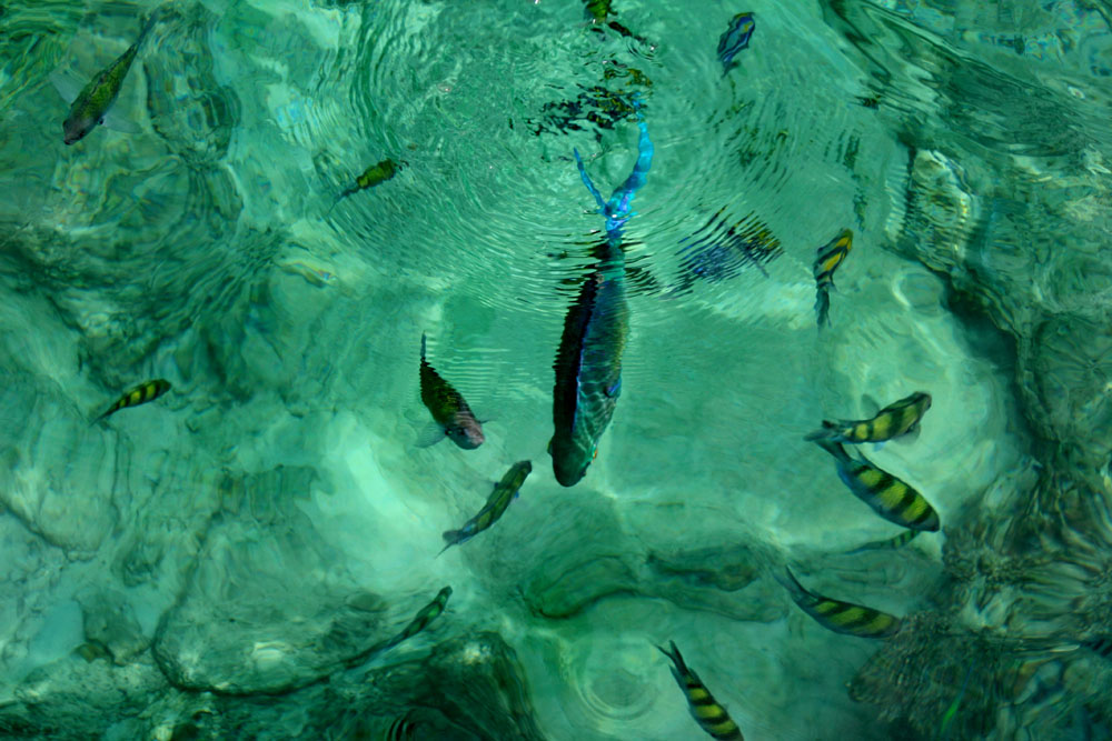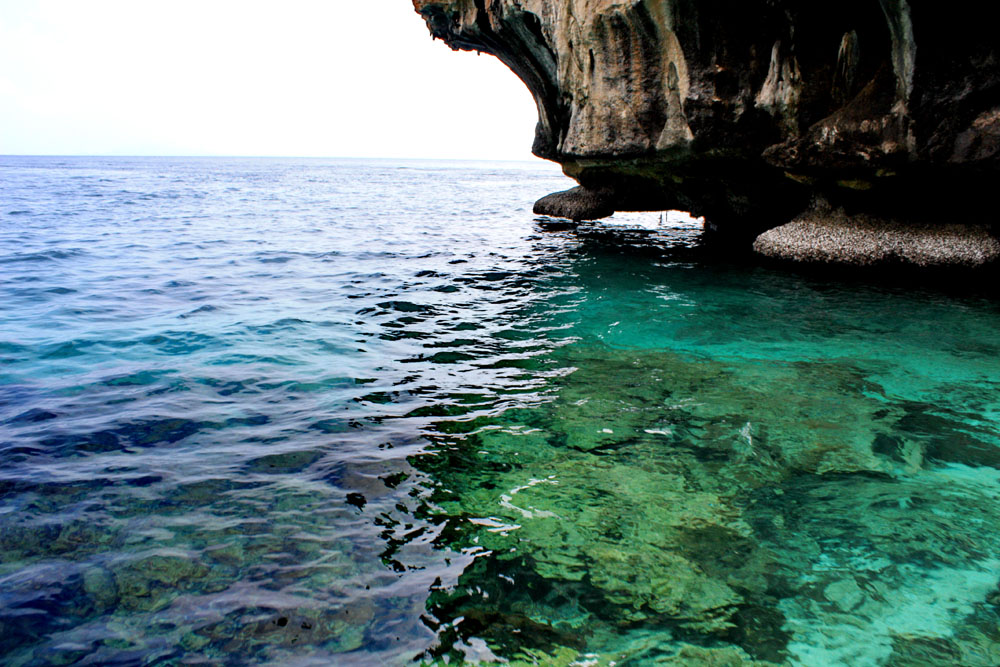 หลังจากกินข้าวมื้อกลางวัน เรือก็พากนักท่องเที่ยวออกมาที่อ่าวฝั่งตรงข้ามกับท่าจอดเรือของเกาะพีพี ปล่อยนีกท่องเที่ยวลงดำน้ำดูปลา ดูปะการังอีกรอบ