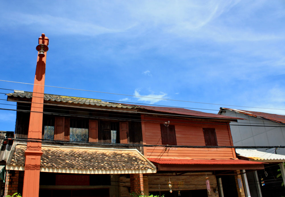 ศาลเสด็จเตี่ย ที่หัวถนนเข้าชุมชน กับตึกสองชั้นอายุร้อยกว่าปี แปลกแต่จริงวันนี้มีผมแค่สองคนที่เป็นคนไทย นอกนั้นฝรั่งหมด ฝรั่งก็คงงงว่านี้คืออะไร ขนาดผมกว่าจะรู้เรื่องราวของชุมชน ยังเดินจนเหงื่อตก ไม่รู้จะคุยกับใคร