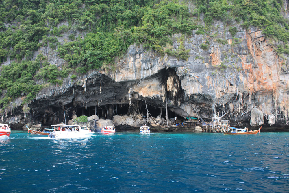จุดต่อไปถ้ำไวกิ้ง ที่นี่ก็สวยครับ แต่ห้ามนักท่องเที่ยวขึ้น เพราะขณะนี้กลายเป็นเกาะสัมปะทานรังนกไปแล้ว เซ็ง ๆๆๆๆ