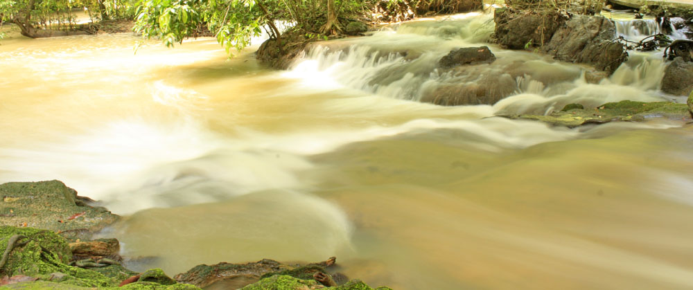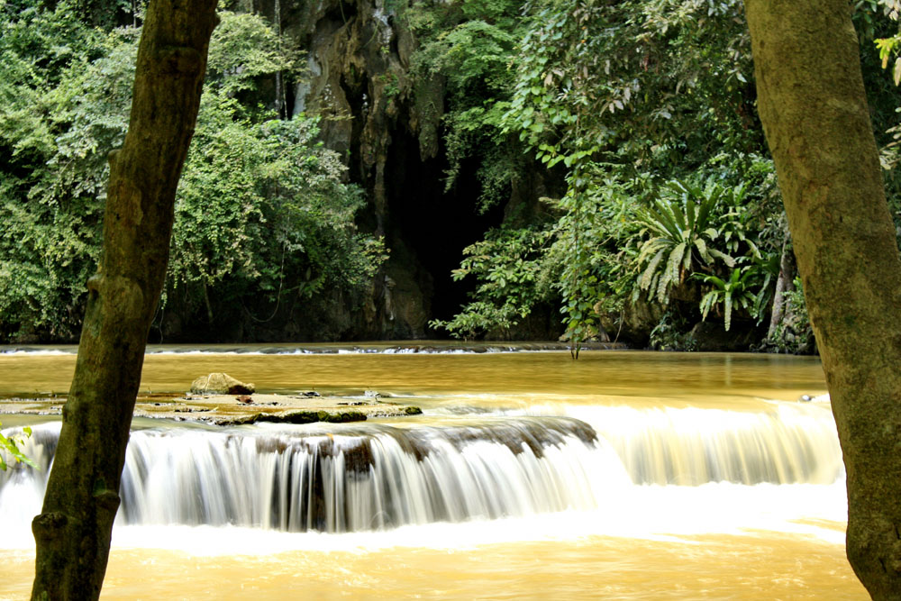 สายน้้ำจะออกสีแดง ๆ เพราะเมื่อวานฝนพึ่งตก เลยพัดเอาตะกอนดินจากในถ้ำออกมาด้วย แต่ก็สวยไปอีกแบบครับ( จนท.บอกว่าถ้าฝนไม่ตกน้ำจะใสมาก)