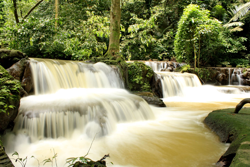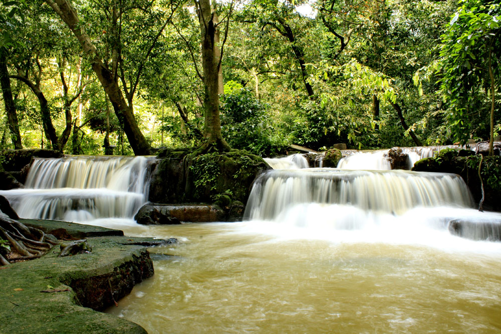 น้ำตกรามัญ มีหลายชั้นลดหลั่นกันลงมา สวยไปคนละแบบ ทุกชั้นลงเล่นน้ำได้ นักท่องเที่ยวค่อนข้างเยอะ