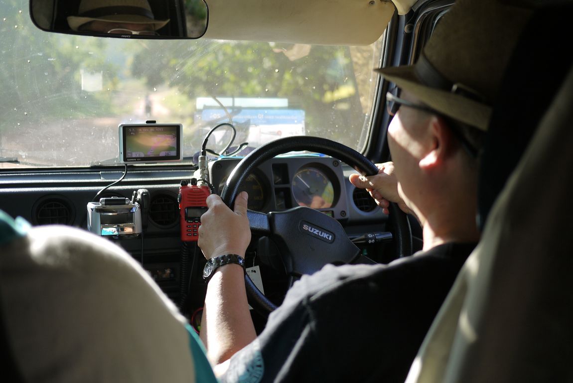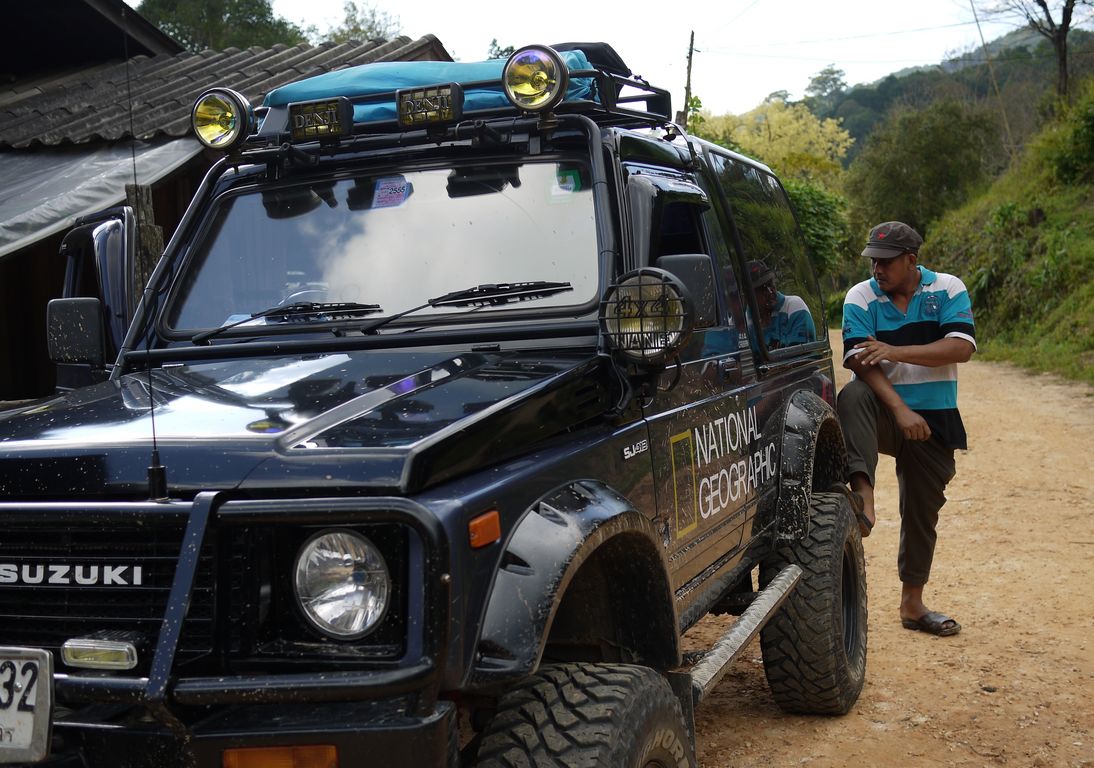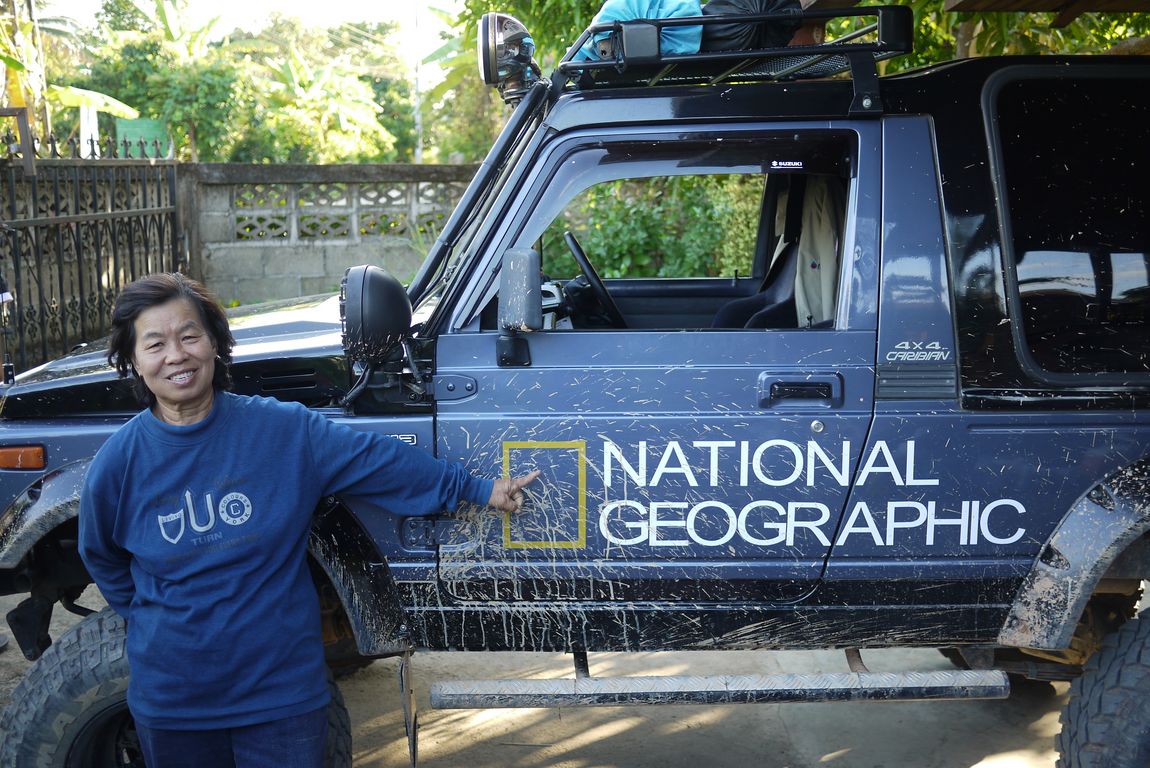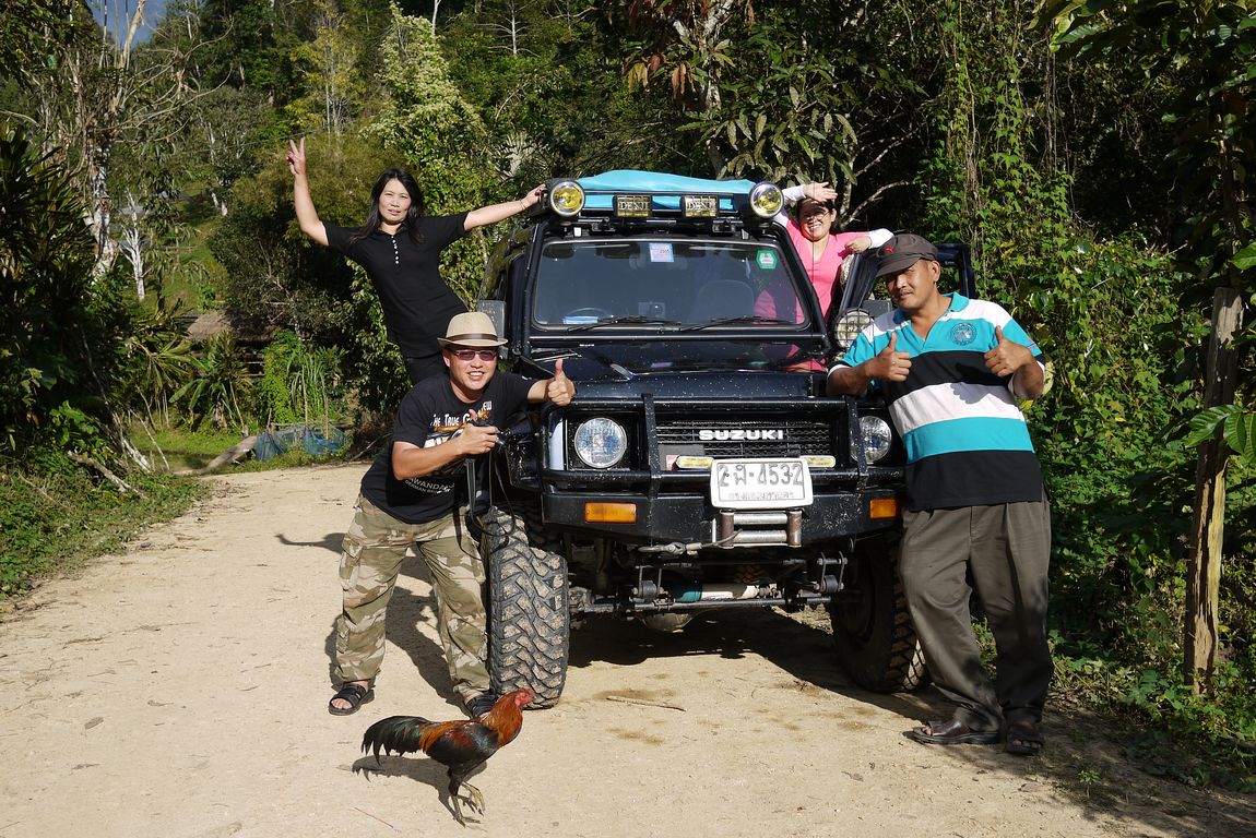 1.สาวสวยชุดดำโหนรถโบกมือ พี่ซอนญาติทางฝ่ายแม่บัว ไกด์มืออาชีพพานักท่องเที่ยวลุยน้ำตกในป่าลึก วันนี้หยุดงานเพื่อมาดูแลพวกเราโดยเฉพาะ