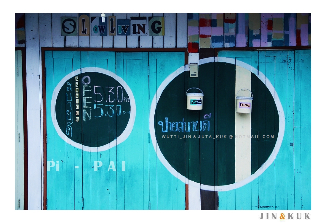 เรียกว่าอยู่ปายมา 2 วันแล้วใอ้ที่คิดว่าจะไปแม่ฮ่องสอนต่อ สงสัยต้องล้มเลิกเพราะเริ่มชักติดใจ มึน อึน งง กับความเป็นปายมากมาย มีทั้งศิลปะทางความคิดที่เกิดจากธรรมชาติและการกระทำ เรียกว่าเรามาเสพกันจน อ่อนเพลีย แต่ไม่ละเหี่ยใจ พร้อมจะลุยปายกันต่อไปเอาให้หายคิดถึงปายกันไปเลย แนวคิดต่อไปของเรา 2 วันแรกขอเก็บภาพสิ่งที่เกิดโดยการกระทำก่อนแล้วกัน แบบว่าอะไร อะไรก็ปาย เออ ทั้งเมืองเป็นปายไปหมดเลย น่ารักดีครับ