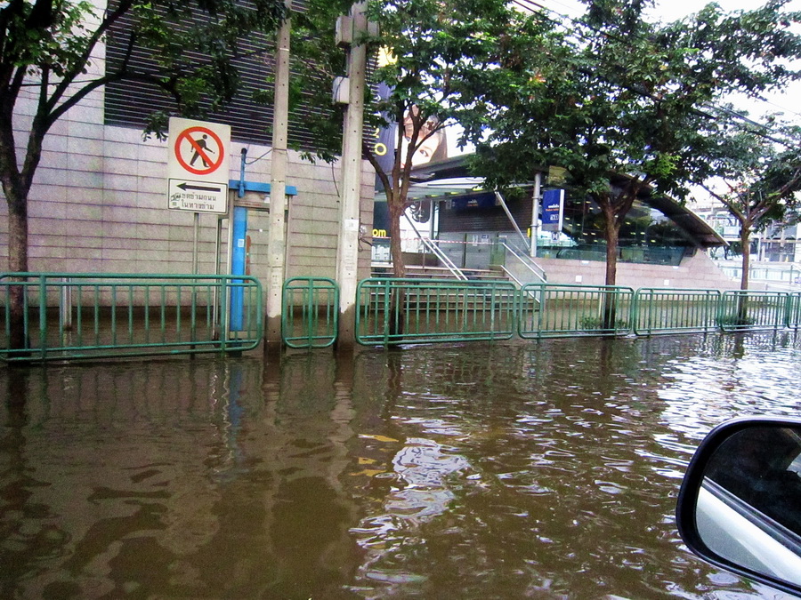 เริ่มต้นต้องลุยน้ำออกจากบ้าน ผ่านหน้า Union Mall เห็นว่าน้ำลดลงมาบ้างแล้ว(10-15 ซม.จากรายงานทาง TV) ภาพช่วงนี้บันทึกโดยลูกชายครับกับกล้องของคุณแม่