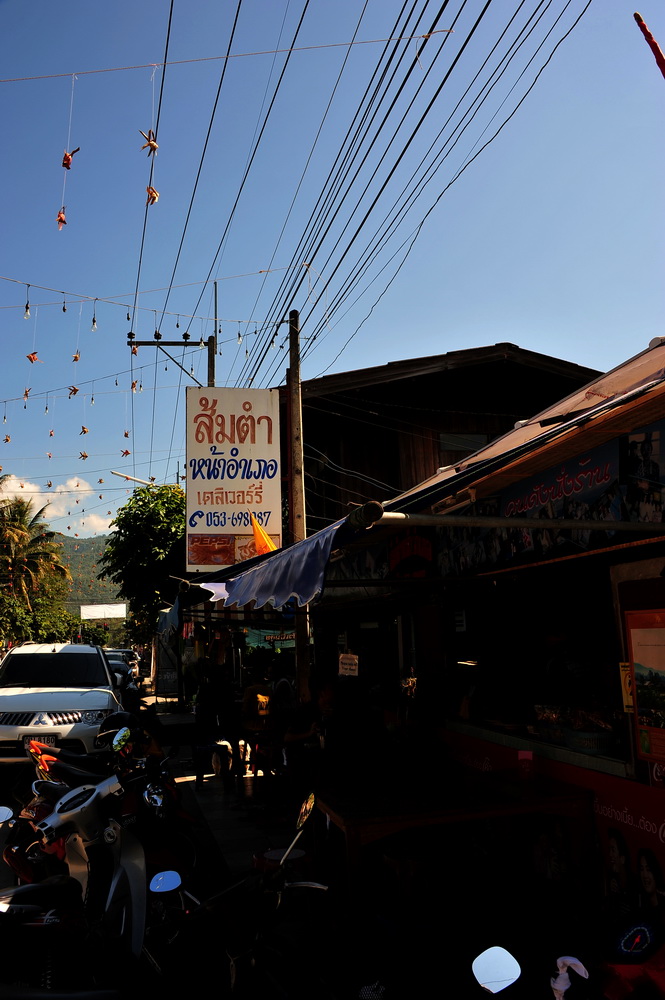 ใกล้จะเที่ยงแล้วครับ ถึงเวลาไปหาอะไรอร่อยทานกันแล้วครับ (กองทัพเดินได้ด้วยท้องครับ) วันนี้เราจะทานส้มตำกัน ได้ยินชื่อมานานแล้วเขาว่าอร่อยกัน ร้านส้มตำหน้าอำเภอ (หน้าอำเภอปาย) ไปถึงคนกำลังแน่นร้านอยู่เลยครับ อย่างไรก็จะรอครับ