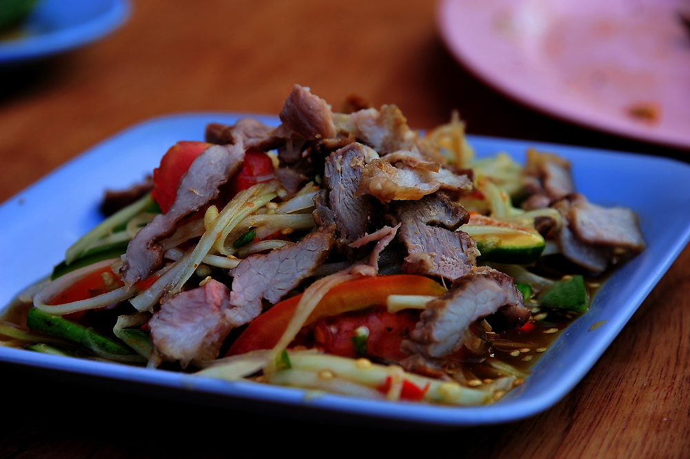 ส้มตำคอหมูย่าง เผ็ดมากแต่อร่อย (นี่ขนาดบอกว่าเผ็ดน้อยแล้วนะเนี๊ยะ)