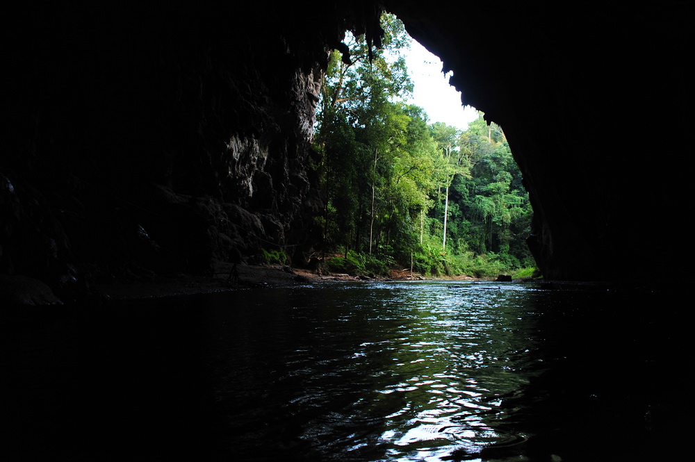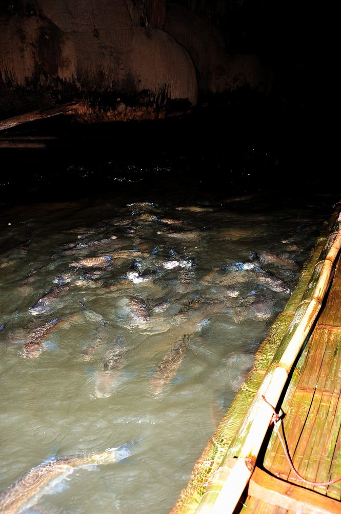 ในถ้ำมีปลา (น่าจะเป็นปลาตระกูลปลาพลวงนะครับ) เราสามารถให้อาหารปลาได้