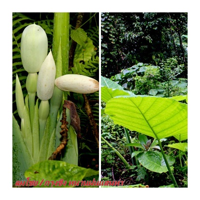 ต้นบอนทั้งใหญ่ทั้งโต ดอกที่กำลังออกใหญ่เกือบเท่ากำปั่น ป่าที่ยังเป็นป่าแห่งขุนเขาหลวง