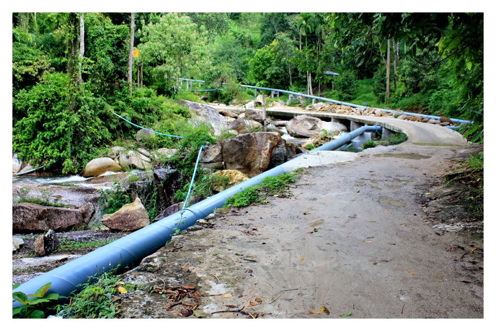 ก่อนเข้าตัวน้ำตก จะเห็นลำธารคู่ขนานไปกับถนนราดยางเรียบสนิท สวยงามไปอีกแบบ ลาก่อนนะพรหมโลก เธอไม่เข้าใจความรู้สึกผมเลย นั่งนึกในใจจะไปใหนต่อกันละเนี่ย กับเวลาที่เหลืออีกห้า ชม. ก่อนหันหัวรถกลับนราธิวาส