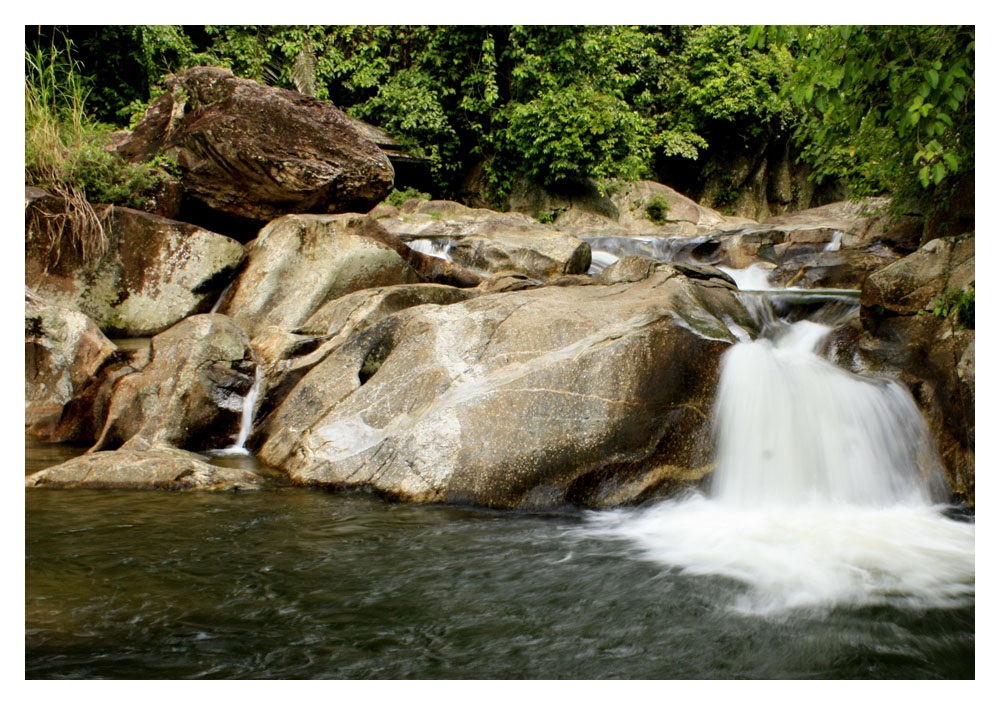 น้ำตกที่ไหลเอื่อย ๆ ตามลาดหิน เหมือนไร้พิษสง