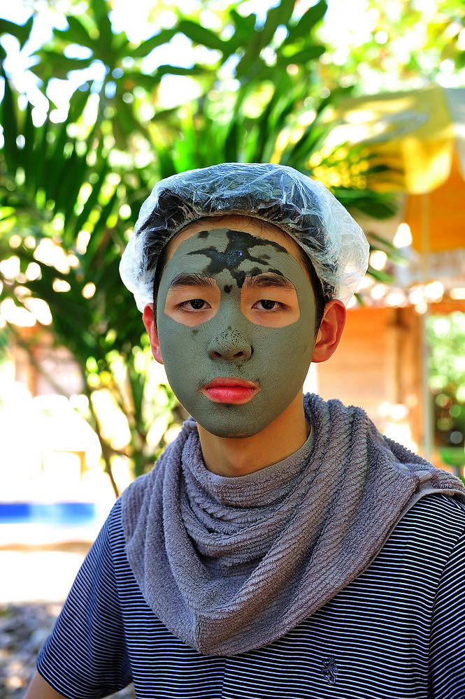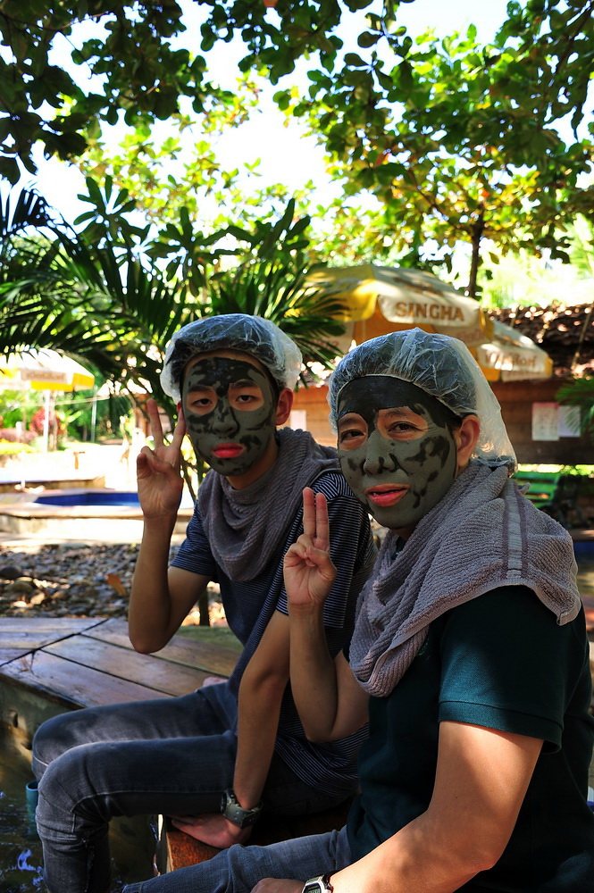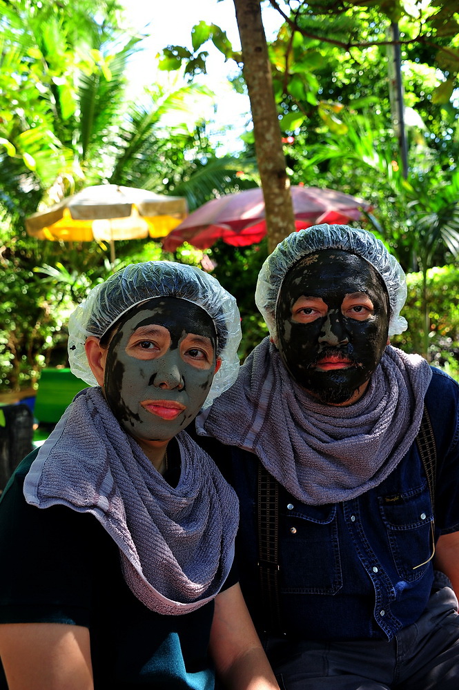 เมื่อทา/พอก โคลนเสร็จแล้วก็ออกมานั่งตากหน้าให้แห้งกันครับ สองคนนี่หน้าเริ่มจะแห้งกันแล้วครับ (สู้ๆ)