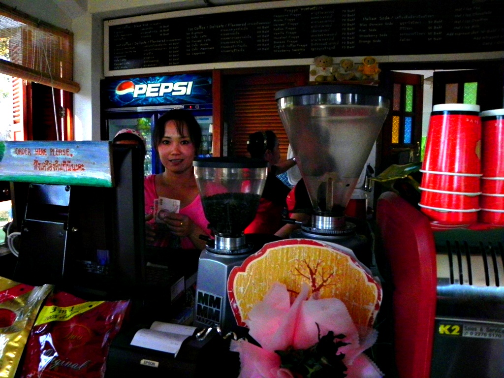น้า...น้า...เราเข้าไปกินกาแฟร้านดังที่สุดในเมืองปายกัน...น้องกาแฟเญ้น 3 แก้ว ขนมเค็ก 3 ชิ้น...390 บาท....งุงิงุงิ