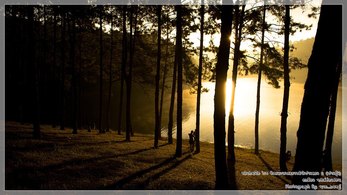 ภาพนี้ถ่ายตอนกำลังจะเดินกลับเต็นท์หันไปเห็นช่างภาพ 2 คนกำลังเก็บภาพกับแสงเป็นลำผ่านต้นสนมาเลยขอเก็บภาพไว้หน่อย (ขออภัยและขออนุญาติท่านที่อยู่ในภาพด้วยนะครับ)