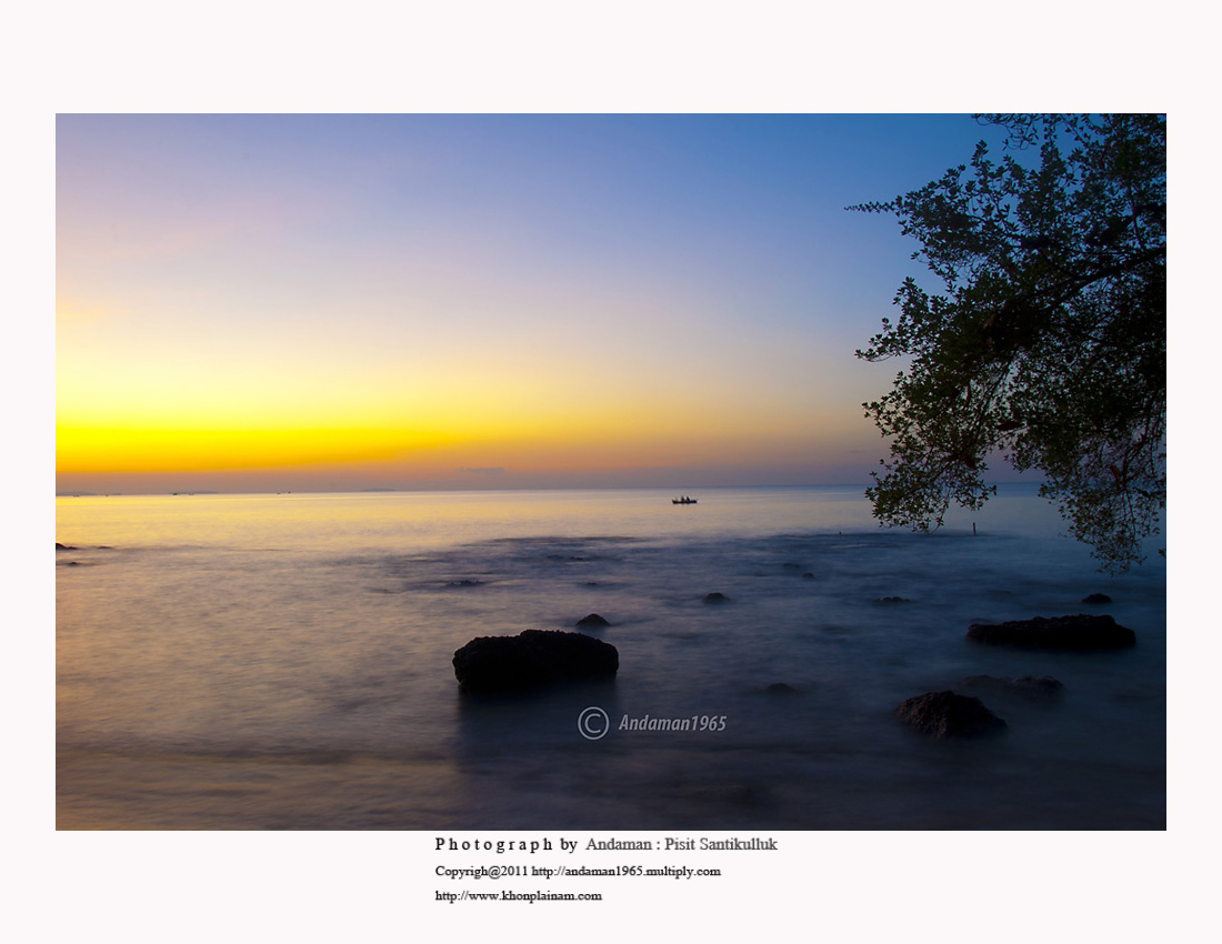 ทะเลยามเช้ายังคงเงียบสงบ...สภาพแสงจริงยังมืดมาก แต่ด้วยการเปิดหน้ากล้องค้างไว้นานๆ....ทำให้ดูเหมือนมีแสงสว่างพอสมควร....