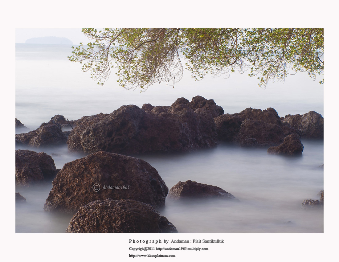 พลิ้วคลื่นเบาๆ...เฝ้ากระซิบกับโขดหิน....ลมทะเลยามเช้าพัดสดชื่นเย็นสบายยิ่ง..