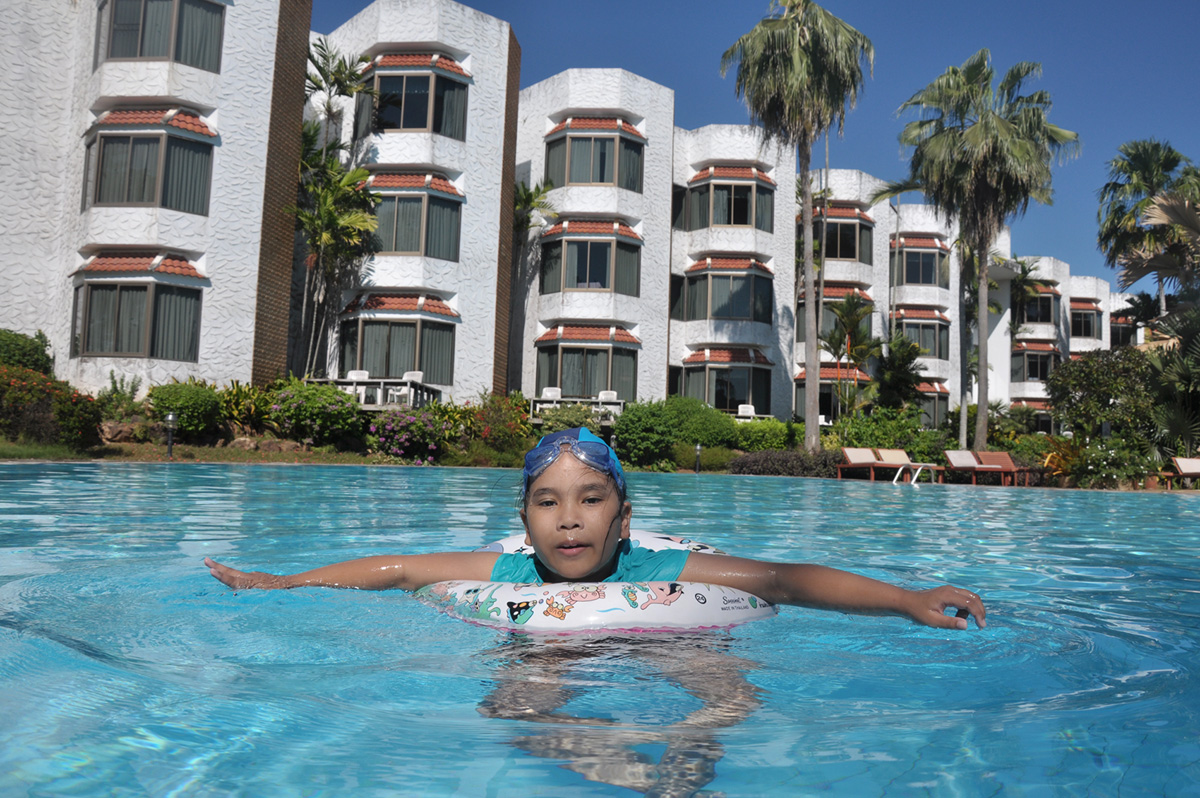 เสร็จจากอาหารเช้า คิวต่อไปคือสระว่ายน้ำ....