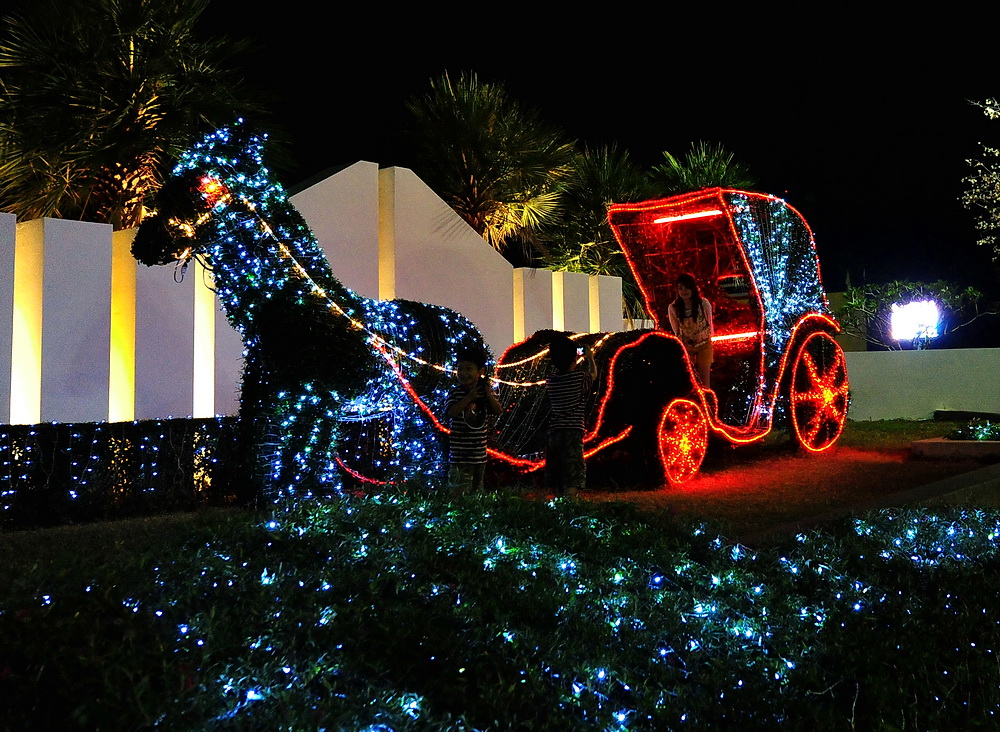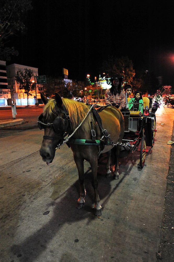ไปทานอาหารเย็นกันที่ร้านอาหารเมือง ของกิ๋นบ้านเฮา วันนี้ที่ร้านคนเยอะครับ น่าจะเป็นเพราะมีเคาน์ดาวร์กันด้วย เราใช้เวลาทานไม่นานก็กลับที่พักกัน พวกผู้ใหญ่ขอตัวขึ้นนอนกัน พวกเรา(เด็ก) ไปนั่งรถม้าชมเมืองกัน (เดี๋ยวหาว่ามาไม่ถึงอีก ค่าบริการ 300 บาท)