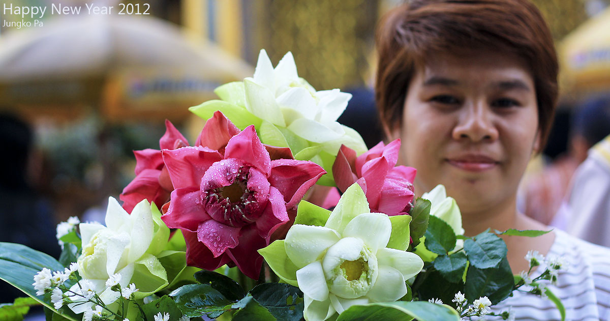 ร่วมถวายแจกันดอกบัว พระแก้วมรกตกันนะครับ และขอพรรับปีใหม่กัน