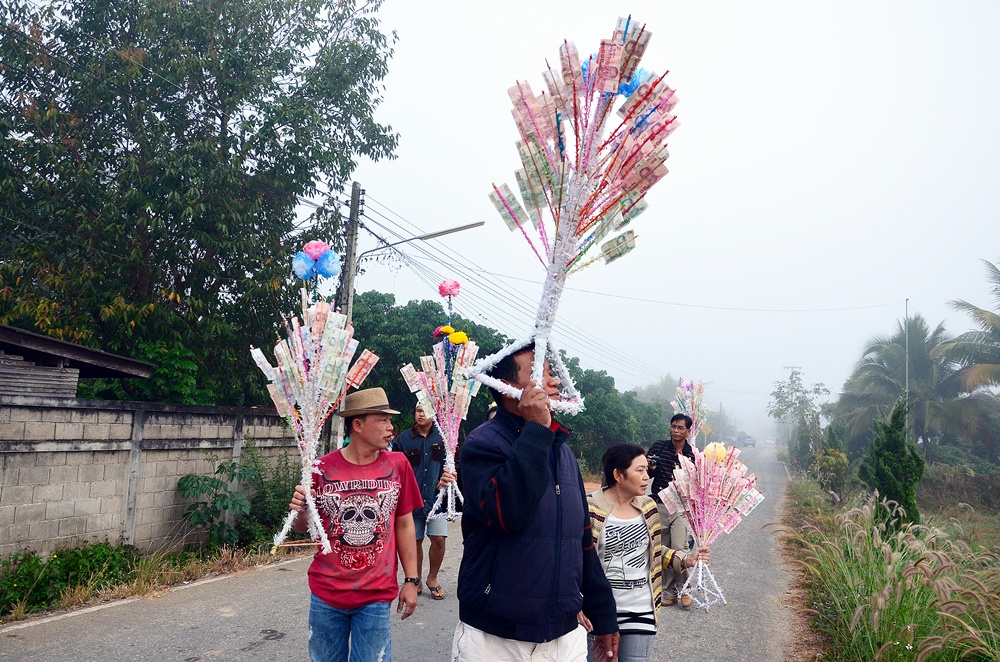 ...... กลับมาที่บ้านแม่บัว คณะผ้าป่า เตรียมตัวเคลื่อนขบวนไปวัดกันแล้ว ..........