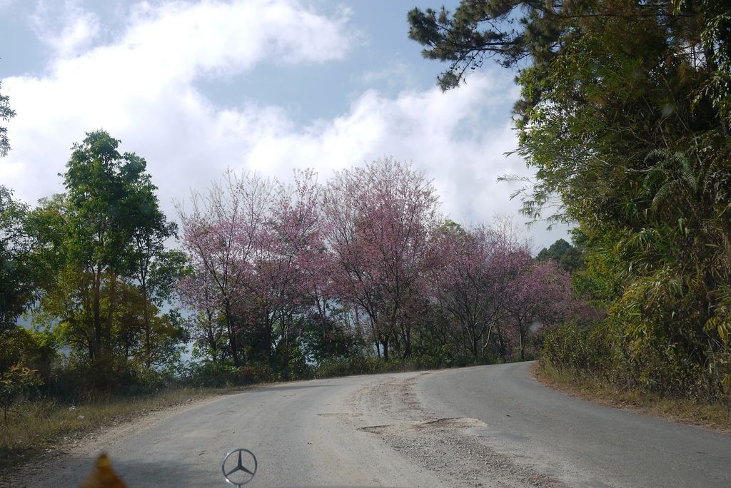 ขับรถขึ้นไปด้านบนมีต้นพญาเสือโคร่งปลูกทั้งสองข้างทาง