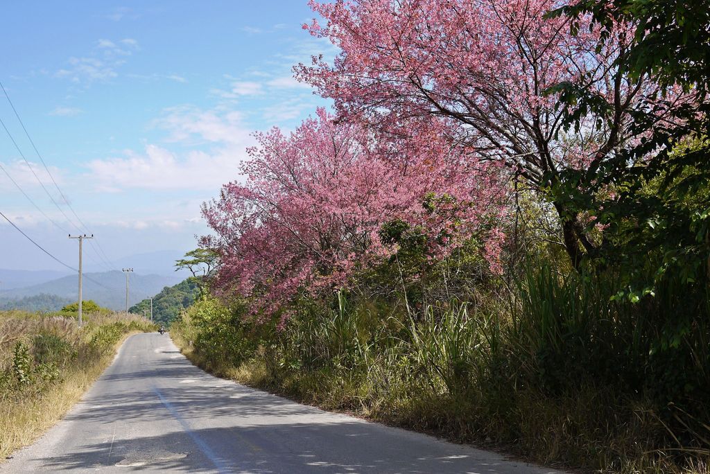 มีต้นพญาเสือโคร่งบานดอกสีชมพูตลอดเส้นทาง