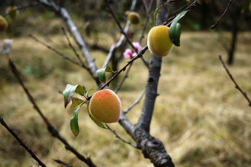 ใกล้ๆกับที่กางเต้นท์มีสวนท้ออยู่รอบๆ