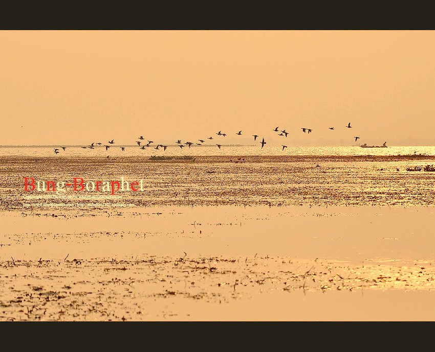 ยามเช้ากลางทะเลสาบสีทอง ทั้งคนและสรรพสัตว์ออกหากิน...