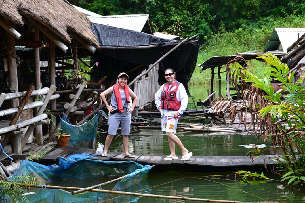 ถ้าจากน้ำตกห้วยแม่ขมิ้น มาปางฯต้องลงแพครับ ถ้าไม่ลงก็ต้องขับย้อนมาที่สันเขื่อนศรีฯ อ้อมมากมายครับ