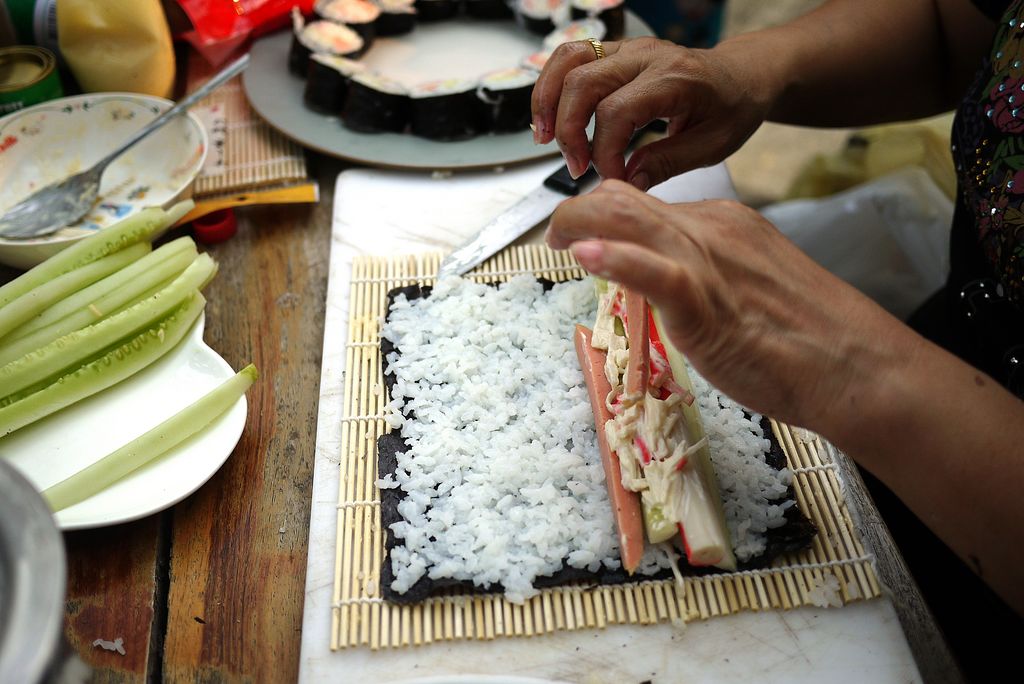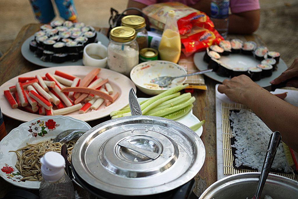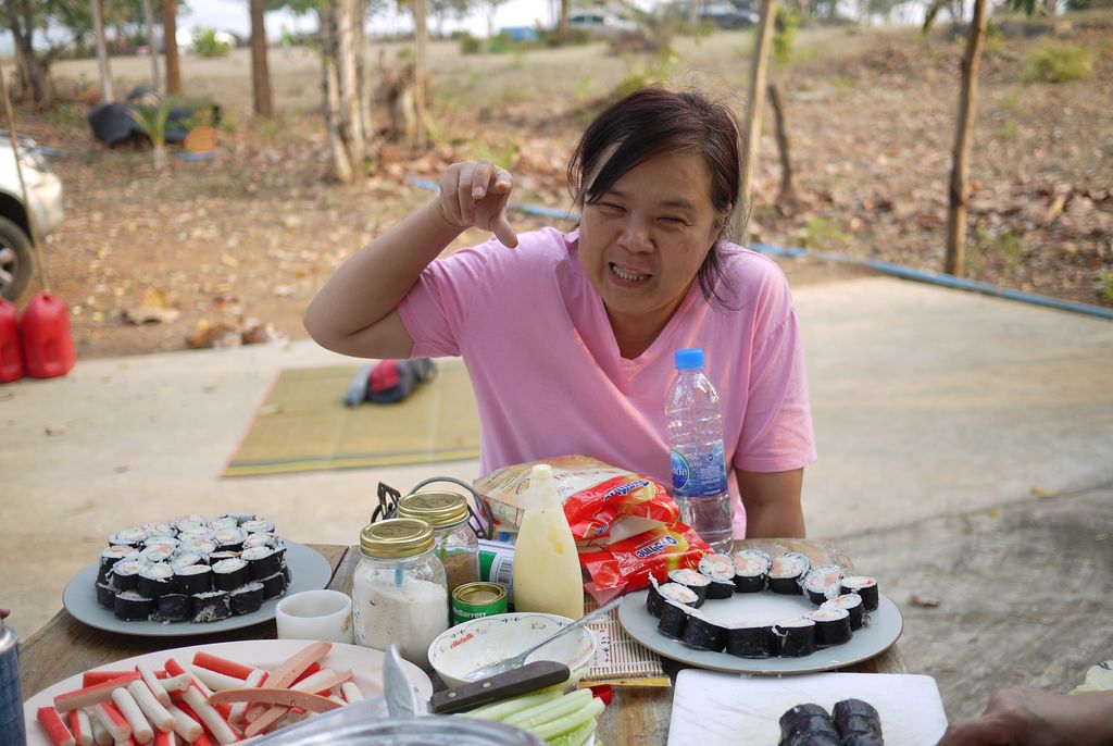 กำลังทำแคริฟอร์เนีย โรล คนทำทำไปด้วย ส่วนคนชิมก็ชิมไปด้วย....