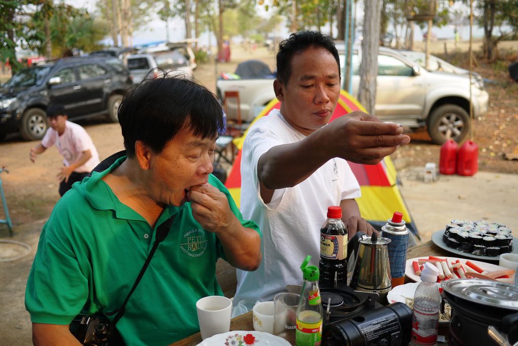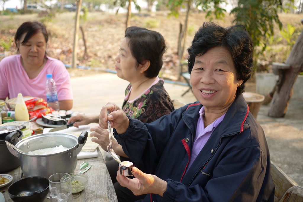แม่บัวลองชิมด้วย เคยกินแต่ข้าวจี่ ขอลองหน่อยซิ ซูชิ ซูเชอะเนี่ย.....